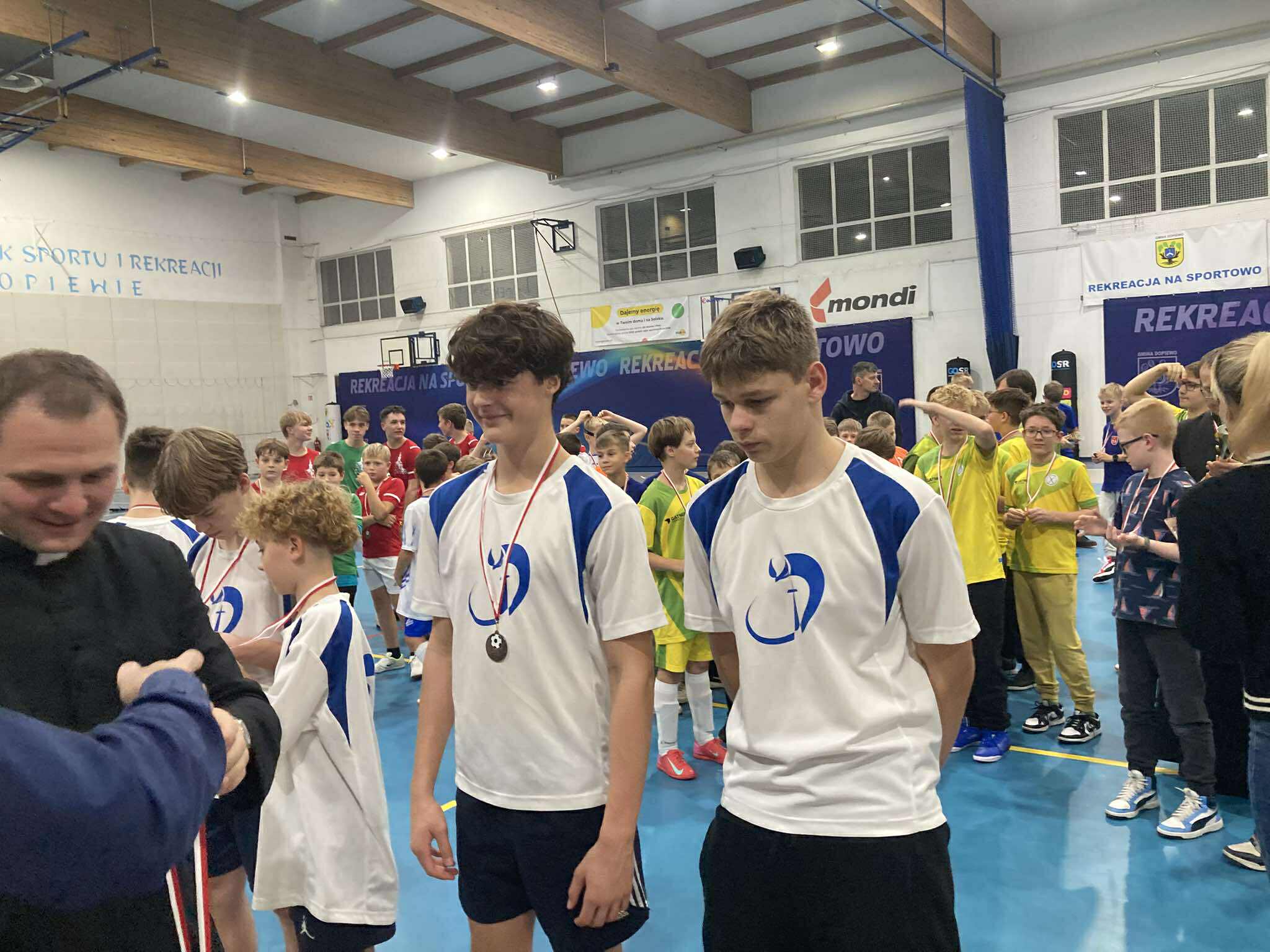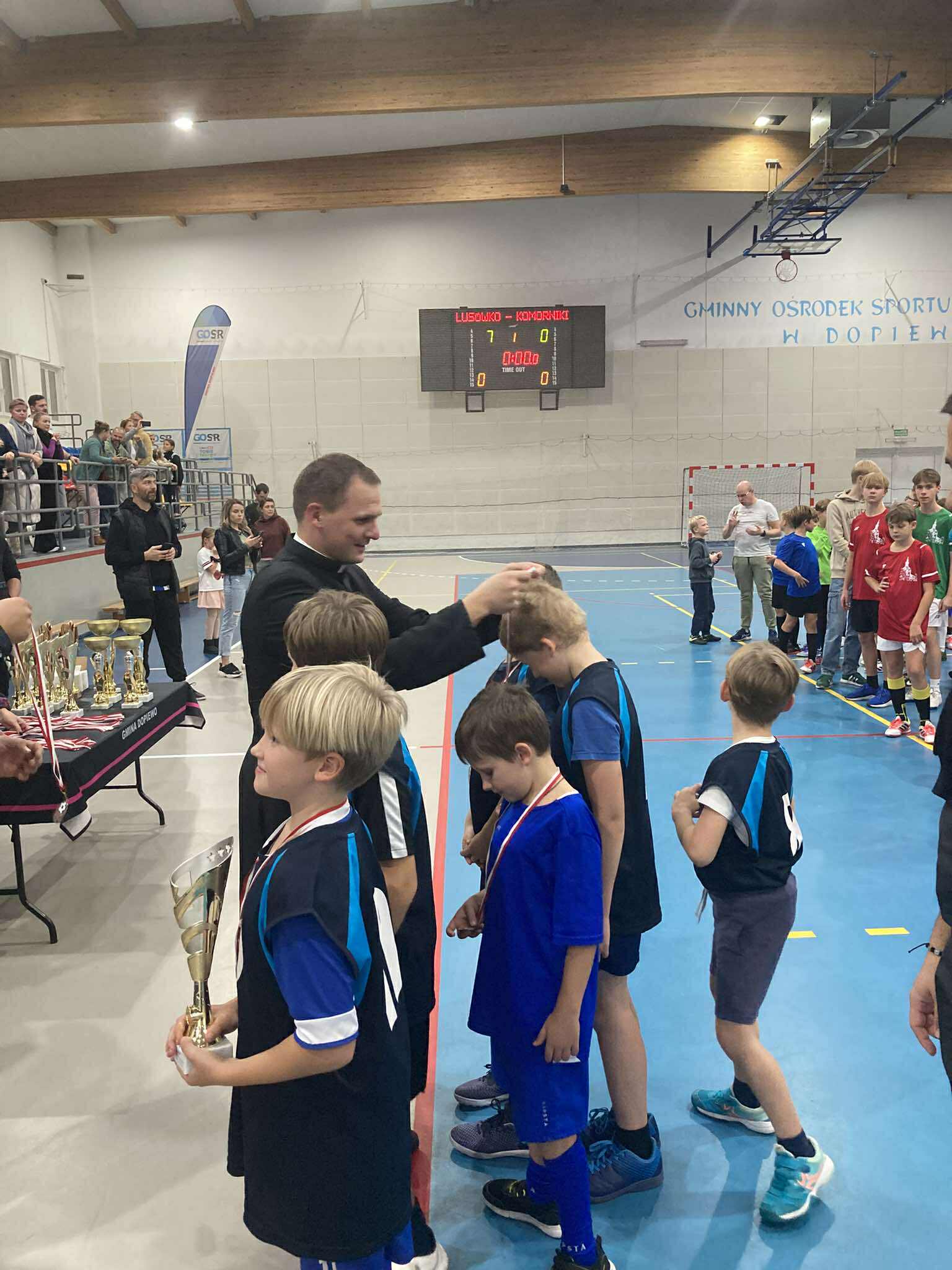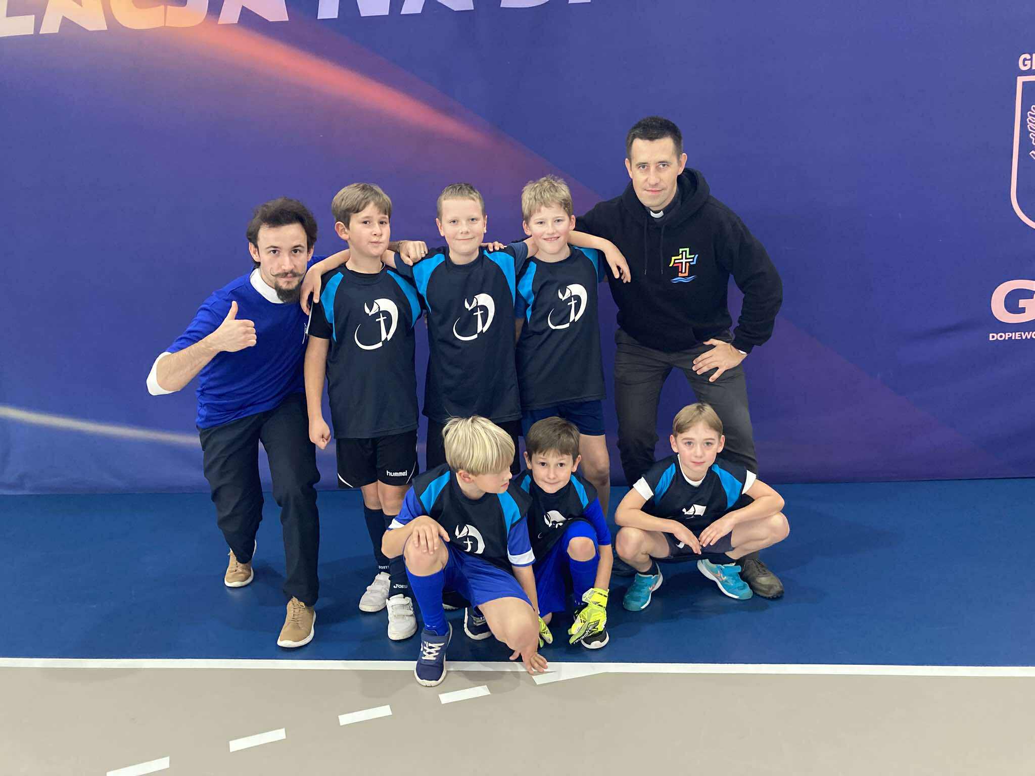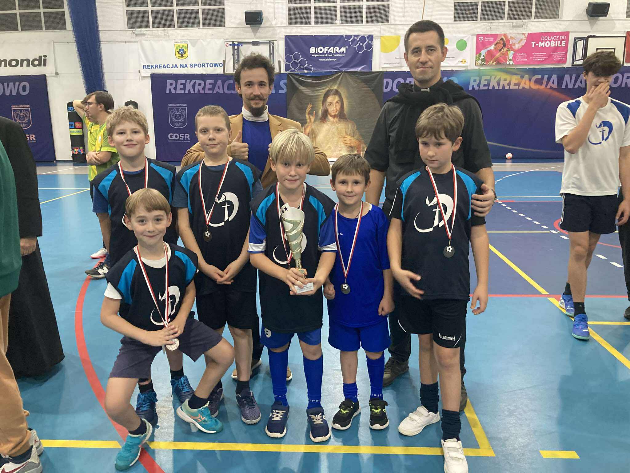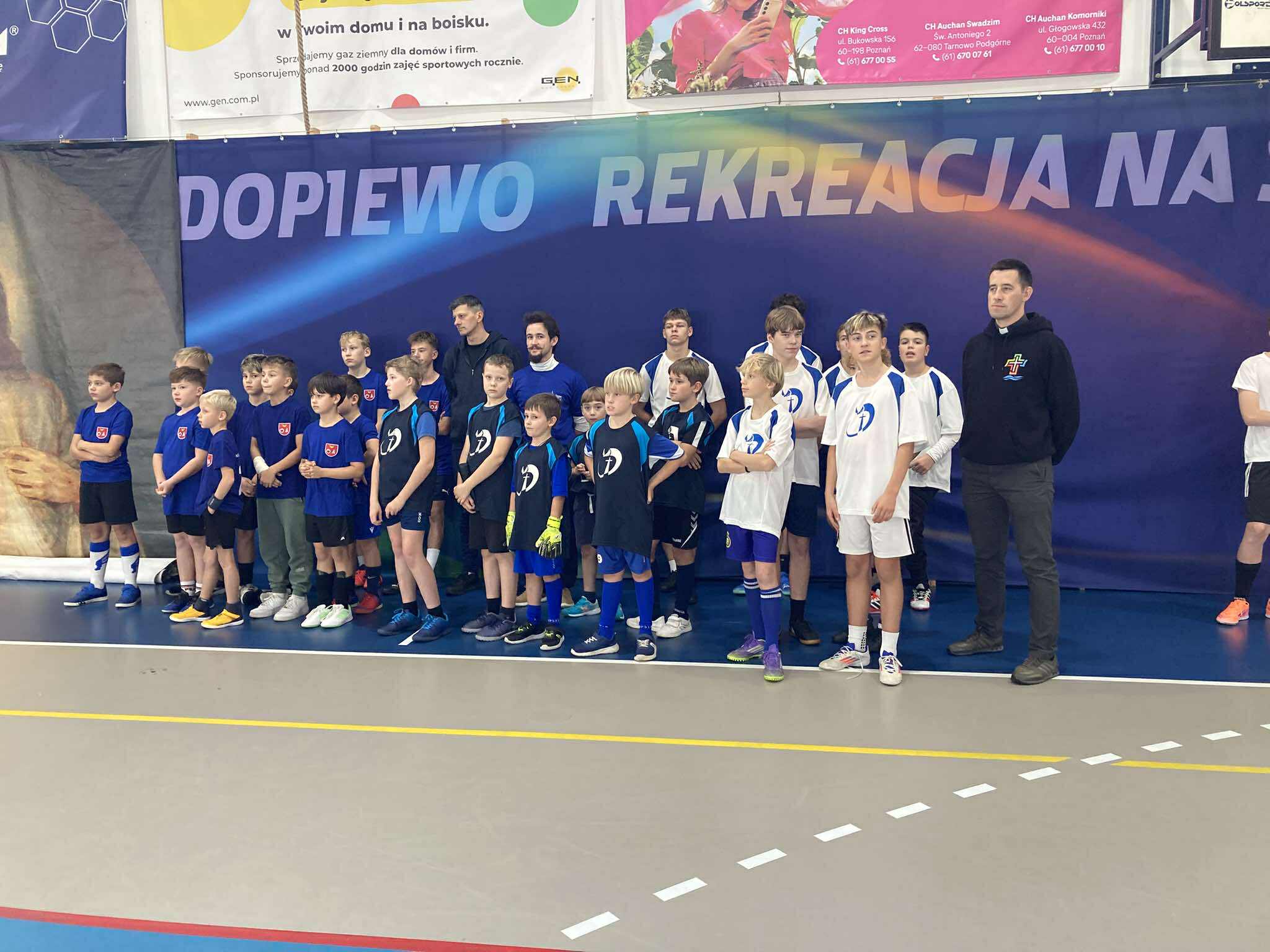 Młodsza drużyna, choć ostatecznie zajęła 7. miejsce, nie dała za wygraną i stawiała czoła rywalom z różnych parafii, w tym z Lusówka, Konarzewa i Komornik. Był to dla nich pierwszy taki turniej, w którym po raz pierwszy grali w pełnym składzie. Choć wyniki meczów były trudne (0:8 z Lusówkiem, 0:3 z Konarzewem, 0:1 lub 1:2 z Komornikami), z meczu na mecz widać było postęp. Dzieci pokazały ogromną determinację i zaangażowanie, co daje nadzieję na jeszcze lepsze wyniki w przyszłości. Każdy mecz to kolejna lekcja, a młodsza drużyna już teraz zapowiada lepszą formę na następne turnieje.