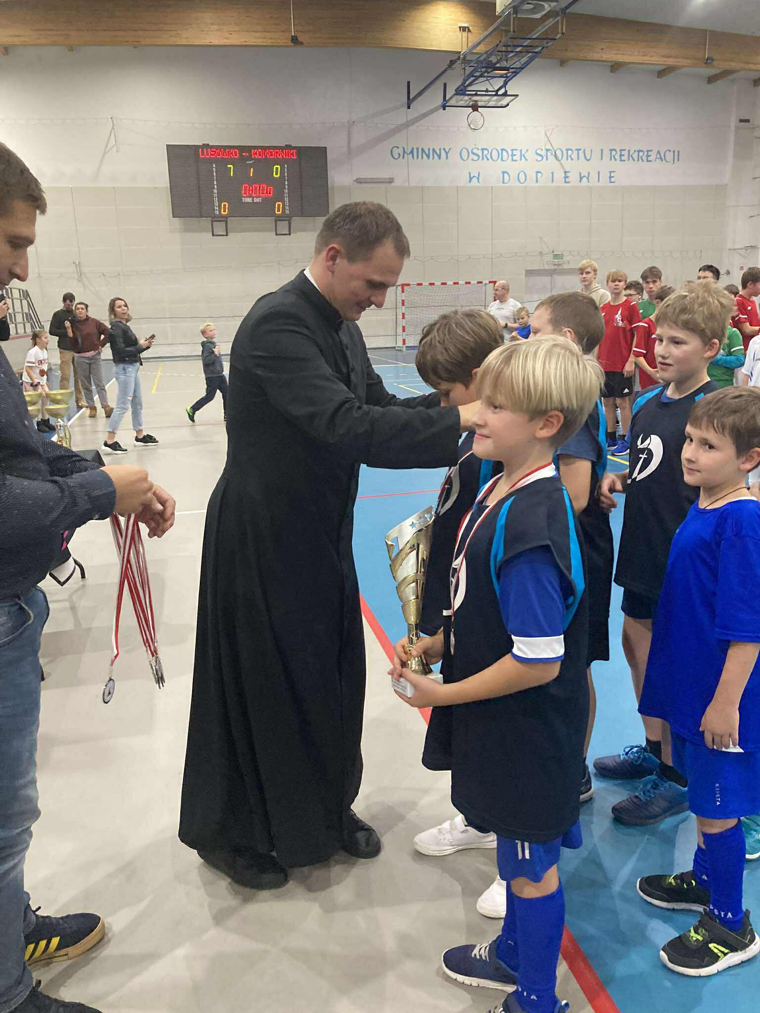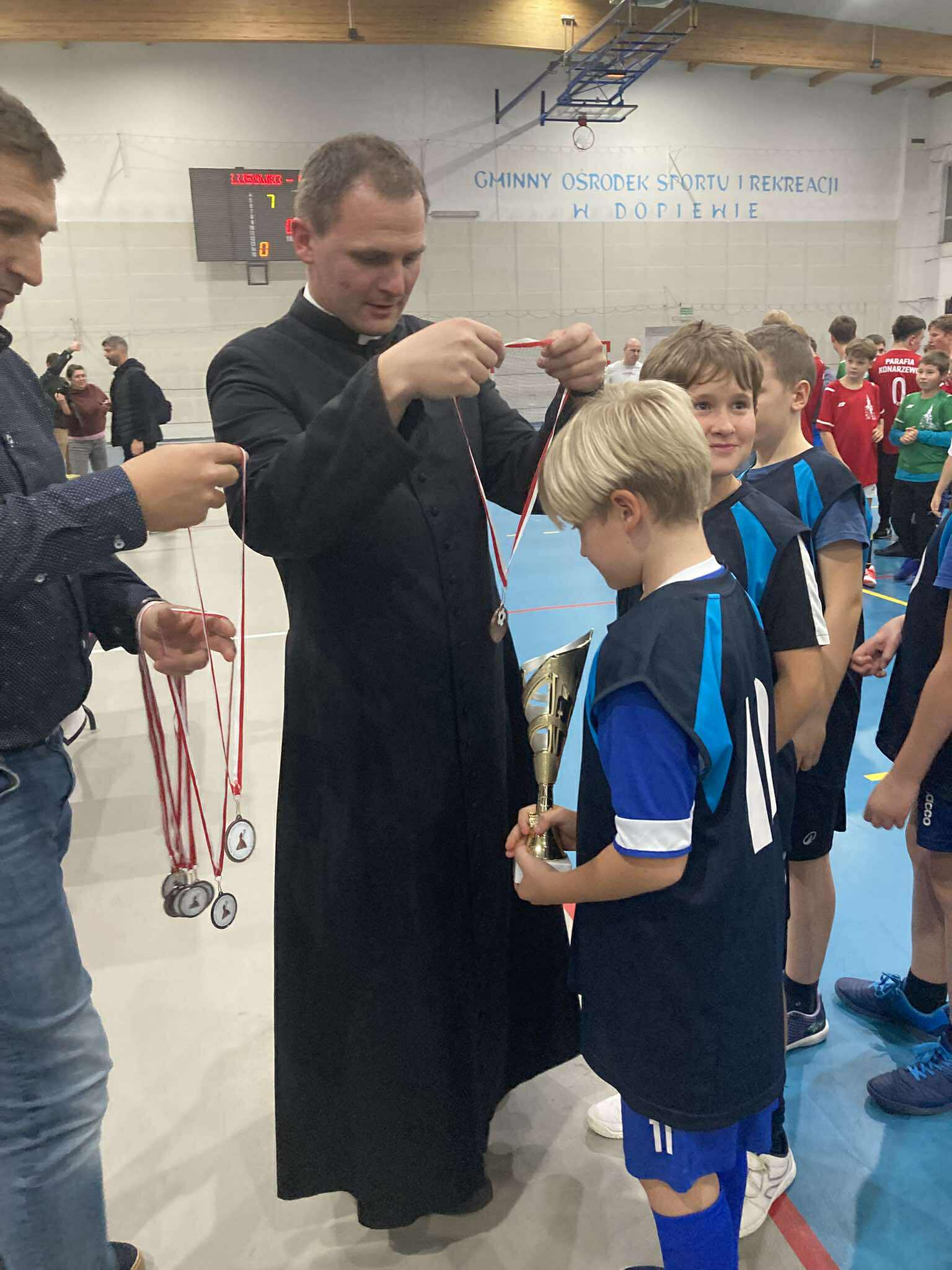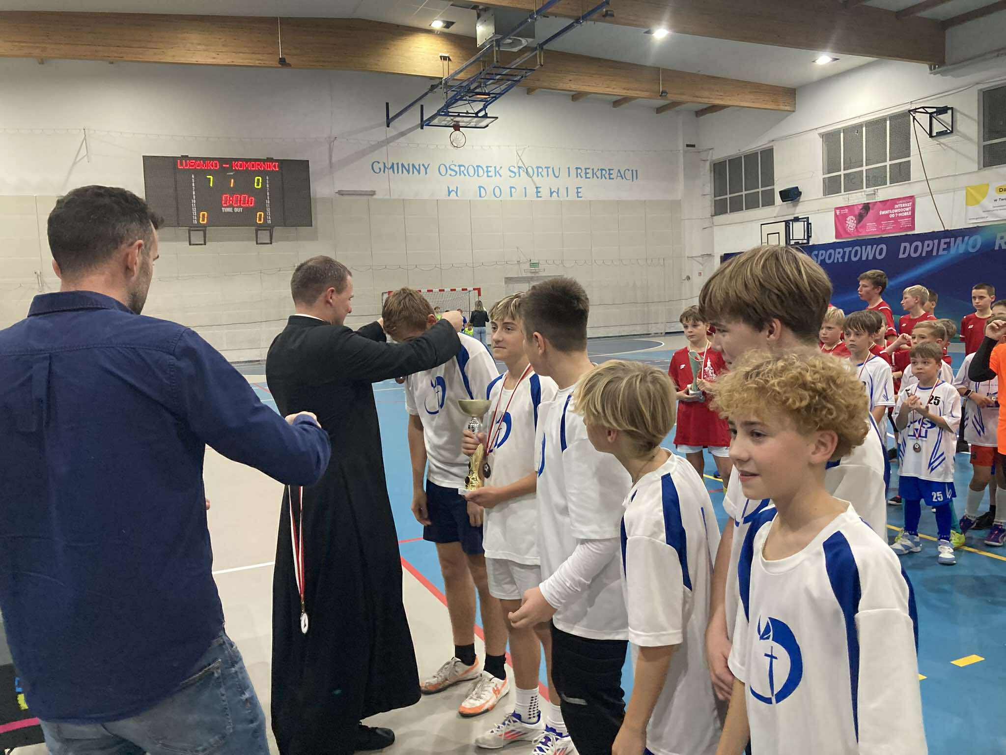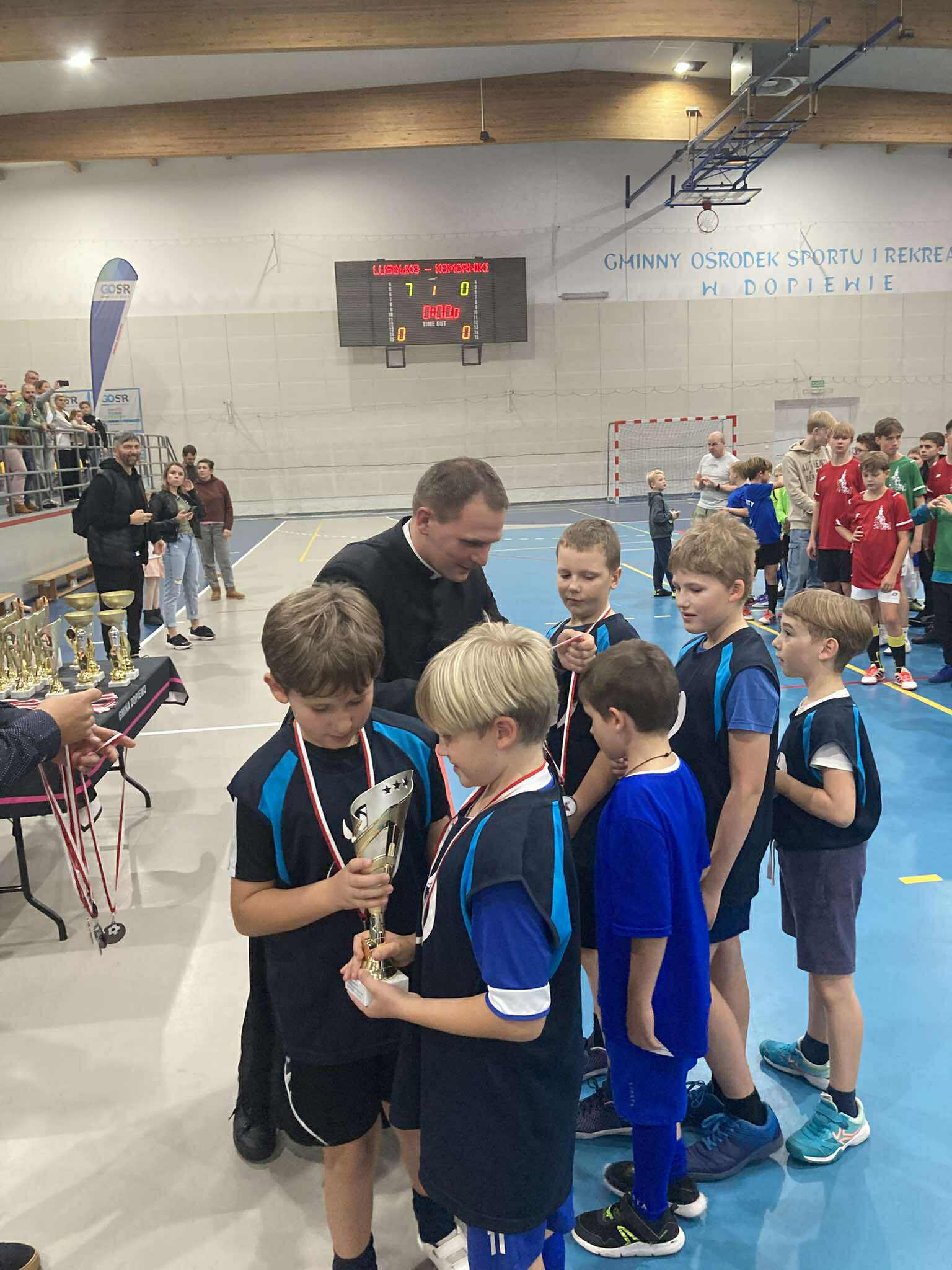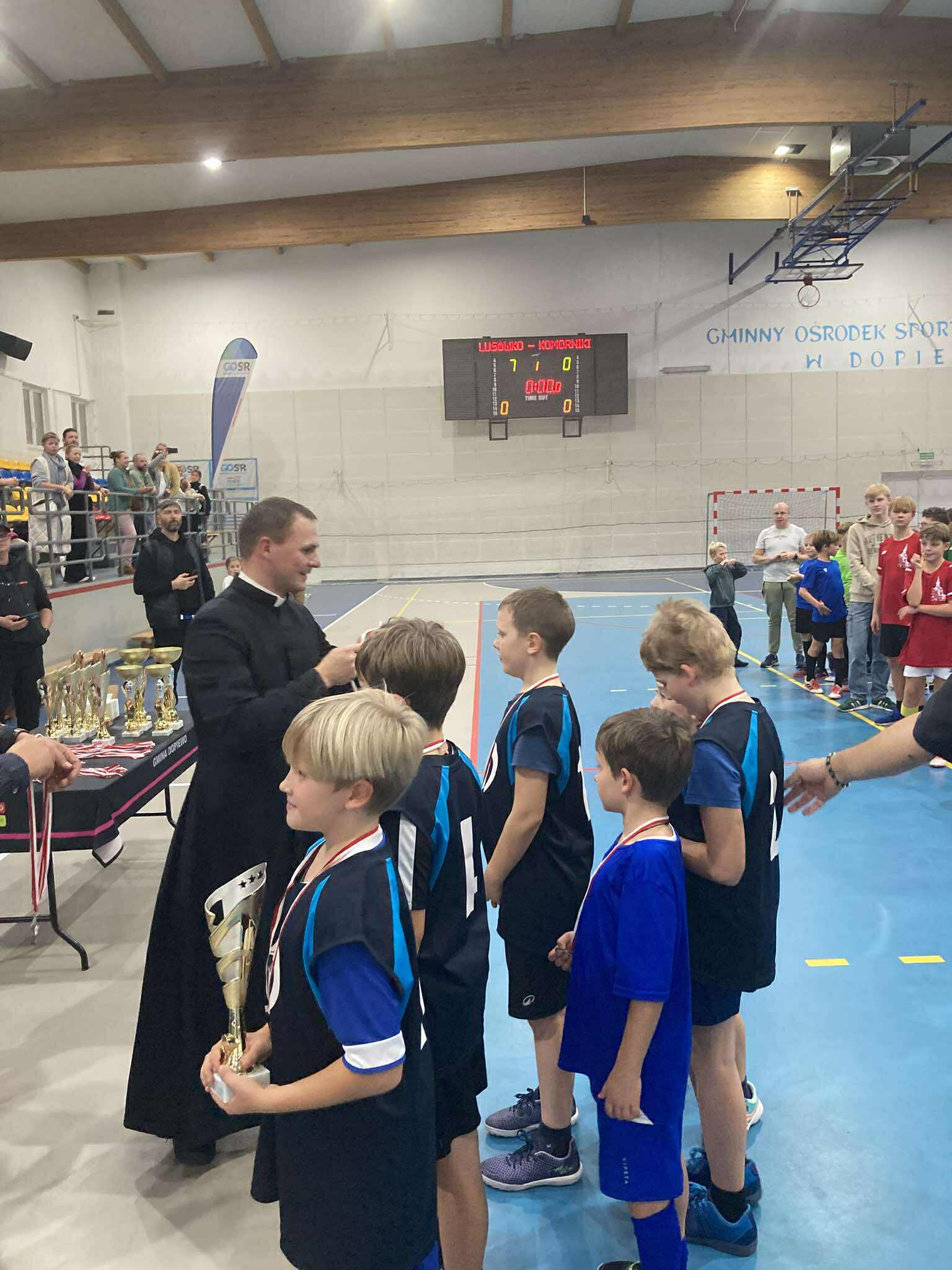 Młodsza drużyna, choć ostatecznie zajęła 7. miejsce, nie dała za wygraną i stawiała czoła rywalom z różnych parafii, w tym z Lusówka, Konarzewa i Komornik. Był to dla nich pierwszy taki turniej, w którym po raz pierwszy grali w pełnym składzie. Choć wyniki meczów były trudne (0:8 z Lusówkiem, 0:3 z Konarzewem, 0:1 lub 1:2 z Komornikami), z meczu na mecz widać było postęp. Dzieci pokazały ogromną determinację i zaangażowanie, co daje nadzieję na jeszcze lepsze wyniki w przyszłości. Każdy mecz to kolejna lekcja, a młodsza drużyna już teraz zapowiada lepszą formę na następne turnieje.
